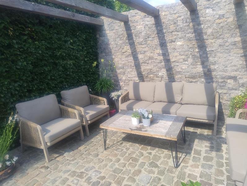 De kussen hebben een dikte van maar liefst 15 cm en u kunt zelf de kleur hiervan bepalen. De salontafel is voorzien aluminium profielen.